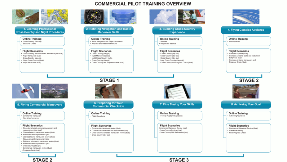 - During commercial flight training, students learn new maneuvers and refine familiar ones.